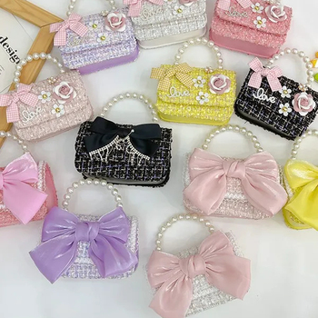 Nuevo Bolso pequeño para niños, bolso cruzado de mano con perlas a la moda, princesa Elsa, elegante, bonito bolso de hombro para niña pequeña, cierre de botón